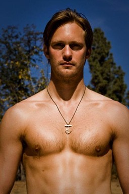 eals every scene I see him in in his current series, True Blood. Seeing photos of him when not in character as Eric Northman, it’s amazing to see how slender (yet athletic) his body is. When in-character as the Swedish vampire sheriff of Louisiana, he looks like a hugely muscled beast. When you’re 6’4″, though, I suppose it’s not hard to look huge in a cast. I loved him as the moronic, yet oh-so-pretty model Meekus in Zoolander, and just as soon as I finish some Swedish lessons, I’m tracking down some of his untranslated works. I’ve also loved many works by his father, Stellan Skarsgård.