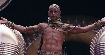 How in the hell did I miss the fact that the stunningly gorgeous HOTTIE in Love Actually was the same actor that played the fantastically gender-bending Xerxes in 300? The Brazilian, Rodrigo Santoro, looks like he’s got some good projects coming up. I’m not sure what I’ll make of the gay-prison comedy I Love You Philip Morris, but it looks like Rodrigo may play-it-gay. More of these sexually secure 6’4″ Brazilian hunks, please…