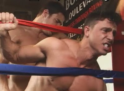 Some of my favorite gay wrestling porn is from porn companies that don’t specialize in wrestling. Perhaps one-shot wrestling products like Randy Blue’s bout with Chris Rockway and Reese Rideout are enjoyable because of the genre crossing. These guys clearly aren’t wrestlers, or actors for that matter. But they’re gorgeous, campy, and fuck like pros (okay, that they are). They don’t even pretend that this is anything other than over-the-top, which has a distinct charm all its own. And speaking of charm, Rockway and Rideout are charmers. I got sucked into a Randy Blue subscription for a while (mostly to check out the uncensored wrestling bout), and most of these performers’ work is not only incredibly hot (have I managed to control myself from mentioning Reese Rideout’s dizzyingly gorgeous ass this long!?), but they both have a nice presence on camera. So I guess they are pretty good actors after all, I suppose.
