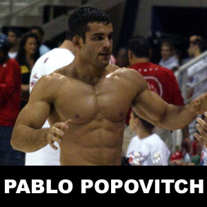 As I’ve mentioned, mixed martial arts don’t generally do it for me. For one thing, Joe Rogan creeps me out for some reason (the ink, the body, the grappling… you’d figure I’d be all over that). And there’s Dana White’s, “oops, sorry for saying ‘faggot.'” If the whole genre, from top to bottom, didn’t seem to be overcompensating for sexual insecurities, this would be much more of a gay destination sport (which would send the bi-curious self-haters running, but would make them much more money). But I do appreciate an astonishingly hot body, and Brazilian Jiu-Jitsu fighter and coach Pablo Popovitch is dizzyingly hot. Seriously, now, look at that body move. Now that puts the “art” in martial arts. I don’t know about his sexual orientation or how secure he feels in his sexuality, but he really has no choice in the matter: he might as well just sit back and be worshipped!
