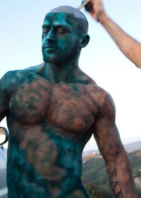 trailer and website for L.A. Zombie. This is so much hipper than I am, but I’m fascinated and therefore must comment. L.A. Zombie is a film by Bruce LaBruce wedding zombies and gay porn. Prolific pornboy, Francois Sagat stars, and the trailers and promo pics show him in various states of either becoming the undead or transforming from the undead to alive, or both, in changing states of undress.
