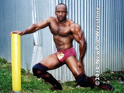 I keep myself at arm’s length from mainstream pro wrestling these days. Too much homophobia; uninteresting stories; plasticized bodies. Mainstream also frequently leaves me with a need to pop in explicitly homoerotic wrestling to write a happy ending to the story. So why waste time with the middle man? The clever minds at BG East understand the potential of cross-promotion, though. They dangle teasers from New Pro Wrestling in the BG East updates to tempt me back to consume some more mainstream pro products. The latest Arena update at BGE nearly gave me whiplash. I scrolled through the teaser pics from New Pro 8 not expecting much to hold my interest. But then I got a look at Flyguy.