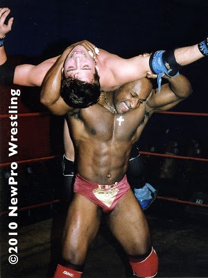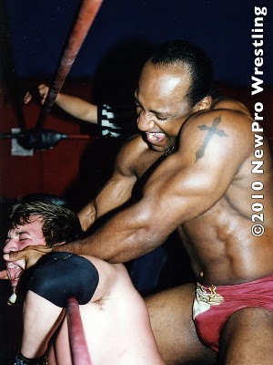 I still feel the need to keep mainstream pro at arm’s length. The Wal-Mart-ization of pro wrestling still leaves me longing for a more regionally based industry, with better skills and more wholehearted performances. New Pro 8 makes me want to pull Flyguy a little closer than arm’s length though. Perhaps trading bearhugs…