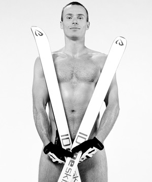 Another Candian freestyle skier, Ryan Blais, is sporting that “oh-you-caught-me-in-my-underwear-and-ski-boots” pose. It turns out, Ryan didn’t make the Canadian team, despite kicking major freestyle skier ass (speaking of, I think Ryan’s got a fantastically muscled one). I would be willing to offer my consolation and sympathy in whatever form Ryan would like. But the ski boots are not coming to bed.