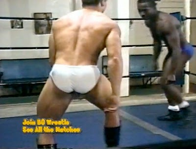 BGWrestle has recently posted some very generous shares from the classic vaults of BG Wrestling. Check out the blast from the past teaser consisting of more than 15 minutes worth of massively thick bodybuilder Steve Sterling in tight, white trunks. This is nice quality for classic clips on YouTube, and it definitely whets the appetite to own more of the prototypical homoerotic wrestling muscle god.
