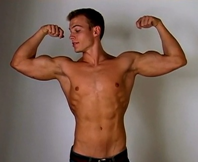 What a priceless moment in time is captured here. That moment when the cocky muscle stud is in awe of his own physique. That moment when a little time in the gym makes his testosterone-soaked muscles balloon up in an instant. That moment when he looks at himself and his eyebrows arch, as if thinking to himself, “Hell, I am fucking amazing!”