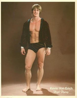Joe at Ringside at Skull Island got me obsessing about Kevin Von Erich again. It doesn’t take much to get me obsessing about Kevin. He’s starred in so many of my personal erotic wrestling fantasies. I remember watching him in a match, had to be late 80’s, where he was apparently fighting with one bad arm. As a result, the entire match was a series of drop kicks and body scissors in which Kevin proved that he could, indeed, beat his opponent with one hand tied behind his back.