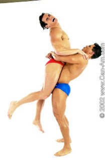I have a deep respect for Ace’s work because he keeps going toe to toe with fellow big boys. Regardless of what you think about the work itself, the big, hard wrestlers who continually tackle (and I do mean tackle) fellow big, hard wrestlers are, pound for pound, carrying more than their fair share of the homoerotic wrestling load. The physical workout itself has got to be intense (not that Ace’s quads could fail to be up to the challenge of doing squats all day with Cage across his shoulders), and the potential for injury has to be heightened in his session with Cage or Uno, as opposed to Angel (well, at least for Ace… the calculus probably doesn’t add up the same way for Angel).