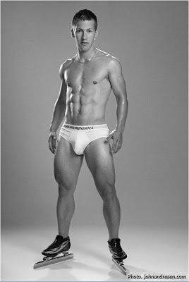 Speed skaters continue to be my most anticipated winter Olympic eye candy. The massive, mounded, shredded thighs packed into lycra are just unbeatable. When there’s an unmistakable bulge at the crotch screwing with the aerodynamics, so much more the better.