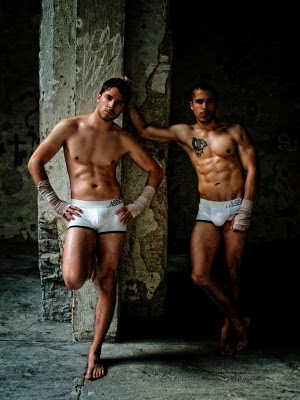 Topic: Barely clothed, hot bodied men engaged in physical combat for sale. No, I’m not talking about the homoerotic wrestling industry… but I could be, couldn’t I? Rather, I’m referring to another delightful installment of male models posed as fighters. Specifically, I’m celebrating Tomislav Maržic and Ivor Jurjević modeling for Lodoli Underwear (via Homotrophy).