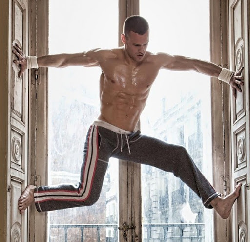 This latest batch of pics of models-as-wrestlers/fighters comes from my grazing in the fields of Homotrophy. The only model identified by name there is this jaw dropping specimen barely fitting into that white wrestling singlet, whose name is Harijs Broza.