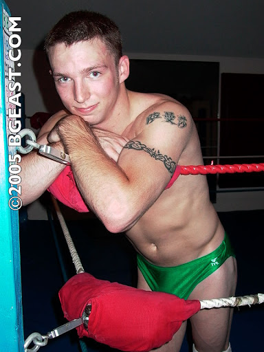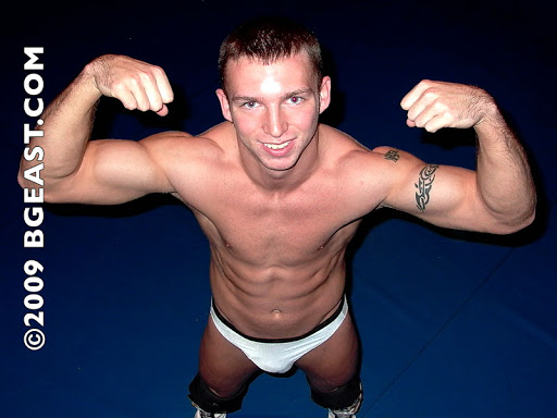 It feels like Jonny Firestorm, my reigning homoerotic wrestler of the month, has been a fixture in BG East since well before his 2005 debut in The Contract 6. Indeed, I’m hard pressed to think of a more productive homoerotic wrestling fixture. Out of 26 catalog releases since his debut, Jonny has wrestled in 25 DVDs, totaling an astonishing 30 matches, not counting his tournament highlights from the World Outgames in Montreal! He’s wrestled icons, pros, dancers, twinks and bears. It’s no wonder he’s starred in two products entitled “Iron Men,” because Jonny is one tenacious wrestler who’s pumped out an astonishing string of high quality wrestling products.