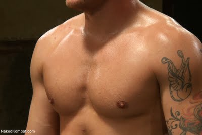 And, needless to say, I never saw Dallas give an opponent a naked pony ride on his way to a victory fuck. Some of this distinction has to do with genres, no doubt. I have both a pornboy and non-pornboy division for my favorite homoerotic wrestlers because they are just distinctly different universes. In one, the wrestlers lose their gear, work each other over hard, and someone at the very least loses a load if not buries his cock in at least one of his opponent’s orifices. In the other, the wrestlers have to appeal to my kinks handicapped by having all their gear on and some maneuvers and stakes off the table (which, when done right, can be just as homoerotically pleasing). But it’s more than just the genres that define Dallas and Parker as having very different appeals to me. Parker convinces me in 3 seconds that he wants to win, that he’s fully present and taking seriously his competition, and that his cocky swagger isn’t just a role play, but a psyching up and psyching out wrestling ploy to make a meaningful victory come true. And that, regardless of the genre, is seriously hot.