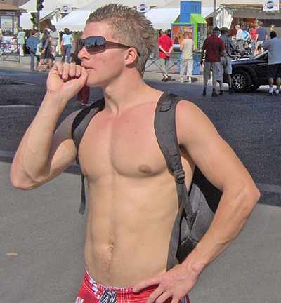 I love travel particularly for the opportunity it brings to widen my gaze. While I haven’t conceptualized this post as part of this summer’s “Diverse Tastes” series, my thoughts turn to how much I appreciate hunk watching outside my own familiar haunts. It’s inspiring to get a taste of the fashions, hairstyles, races and ethnicities, strides and swaggers that I just don’t see in my neighborhood. Hell, I even saw several studs making skinny jeans look hot, and I honestly never thought that was possible.