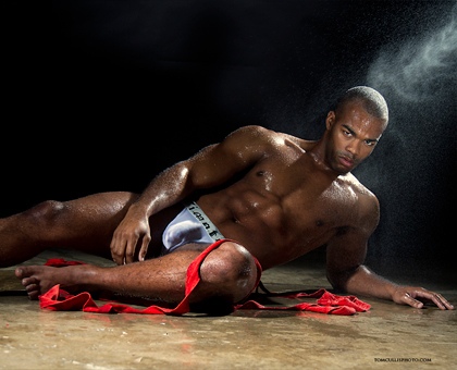 I’m seeing this via Homotrophy, via photographer Tom Cullis. The narrative appears to be that Courtney has just worked up a sweat competing in an amateur wrestling match. He gives his opponent a long, ferocious look, fueled by the adrenaline still pumping in his veins. He shrugs his shoulders out of his singlet straps and tugs off his headgear. We’re done here.