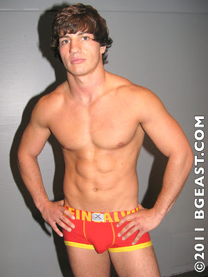 I completely understand why 44% of you selected wrestling hunk Jake Jenkins as the homoerotic wrestler who best embodies the spirit of Odysseus. He was the runaway winner in the field of 6 nominees (7, really, since SP put in a write-in vote for Wade Cutler). Reigning homoerotic wrestler of the month Rex Braddock, looking an awful lot like Steeve Reeves from his sword and sandal film days, had support early in the voting. But tough young Jake came from behind to spank Rex’s bubble butt handily, garnering 2 votes to his 1 when all was said and done.