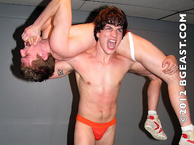 2. You're definitely not the only one Bard, Eli certainly "cranks my erotic kink" as well. I find many body types erotic and sexy. Eli represents a thinner physique. But he is no doubt fit and toned. Hello, eight-pack abs! There are plenty of places to find juiced up muscle jocks. So it's wonderful that you showcase a beautiful, young and toned athlete like Eli on your blog. And beyond that, this kid works hard to sell the action and create an exciting product. That's way more erotic to me than a bunch of juiced up muscle heads languidly rolling around applying bear hugs over and over again the ring any day.