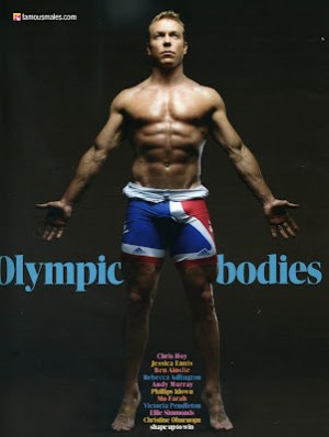 Team GB has a clearly winded Sir Christopher Hoy looking for revenge with his teammate and protege, Jason Kenny. Sir Chris has replaced his lost trunks with matching Union Jack square cuts identical to Jason’s gear.