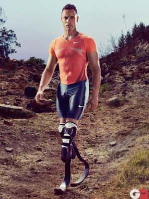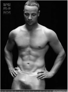 Gasps from the stands greet Andreas’ choice for a tag team partner for the finals. South African hottie Oscar Pistorius has been a hot topic on the circuit for a couple of seasons. The sprinter who is a double amputee had to lobby hard to even attempt to qualify for the homoerotic wrestling competition. Potential opponents complained that his prosthetic blades were fundamentally “foreign objects” that could be used as a weapon in the ring. The handsome South African persevered, and with charm that has become in and of itself legendary, talked himself into the pool of potential wrestlers to go for gold. He didn’t qualify for the individual round robin, but strolling out in green skin tight square cuts, he clearly caught the eye of Andreas to get the nod to join him for tag team glory.