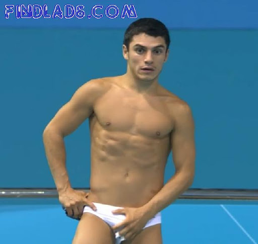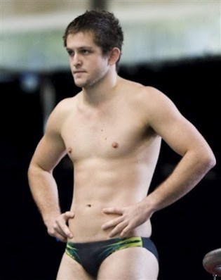 American Troy Dumais has been a fixture in world class diving for over a decade, but he reached the top tier of homoerotic wrestling divers in just the past three years. He competed in the final gold medal match following the diving World Cup six months ago, suffering a brutal loss to the Australian megastar, Matt “M ‘n’ M” Mitcham. Despite the humiliating defeat, it was Troy’s best showing in his homoerotic wrestling career. The rip and strip match also earned him the nickname “D-Train,” and all eyes are on his biggest bulge in the competition when Troy strolls out of the locker room and climbs into the ring wearing navy blue speedos with a red pouch accentuating his two handfuls of fun stuffed in his trunks.