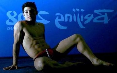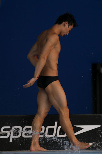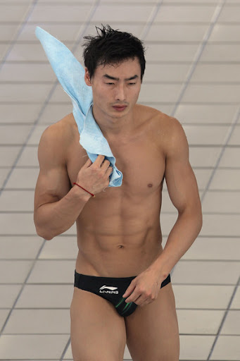 Troy’s opponent is the Chinese terminator, “unstoppable” Kai Qin. On the 3 meter springboard, at least, Kai’s been dominating the world like a fucking machine! However, the master of the boards stayed out of the extramural homoerotic wrestling competitions until the World Cup this past February. Although China’s national athletic program has been determined to dominate the world in everything they set their mind to, Kai went down in a brutally one-sided mauling in the early qualifying rounds in February, choking out a wailing submission with Mexico’s Yahel Castillo Huerta’s cock halfway down his throat. However here in London, Kai cleared the qualifying rounds easily, and the rumor mill is buzzing that China has hired top-tier wrestling porn stars to make sure that the gold is their’s this time around. Kai is cool as ice as he strolls along poolside, slowly but confidently, approaching the ring in minuscule black and red speedos.