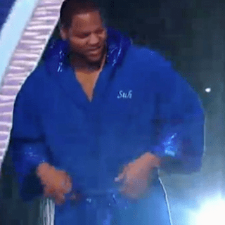 So when I flipped by Splash and saw him come out of the back in his robe, strip it off and hand it to the lovely valet, my brain could only think “HEEL”. I could imagine that all playing out with him jogging to the ring, instead of the diving board.