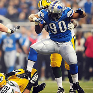 For those who don’t follow the NFL, why Suh? He’s 6’4″/307-lbs with a beefy body. And he has a penchant for being a heel. In the past two Detroit Lions’Thanksgiving games, Suh has made news by stomping a player who was down (2011) and delivering a low blow to Houston QB Matt Schaub (2012).