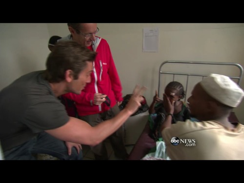 David shows off more of those naked arms, making weeping Ethiopian post-op children somehow become background for my lustful fantasies. I know, that’s fucking messed up, and I blame the commercialization of network news entirely. Those sick bastards.