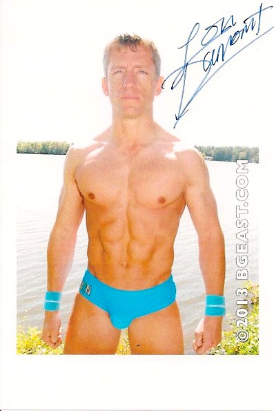 My reigning favorite homoerotic wrestler, Lon Dumont, has perfectly combined the artistry and science of physique training. Seriously, look at his gorgeous body and you know what I’m talking about. He’s been stunning the judges on stage over the past three years of bodybuilding competitions, just as he’s been using that phenomenal physique to crush the competition in the ring at BG East. Not only was he starring in a new BG East release this month, Last Man Standing, he was also bringing home a sexy, big-assed trophy from his latest bodybuilding competition as well.