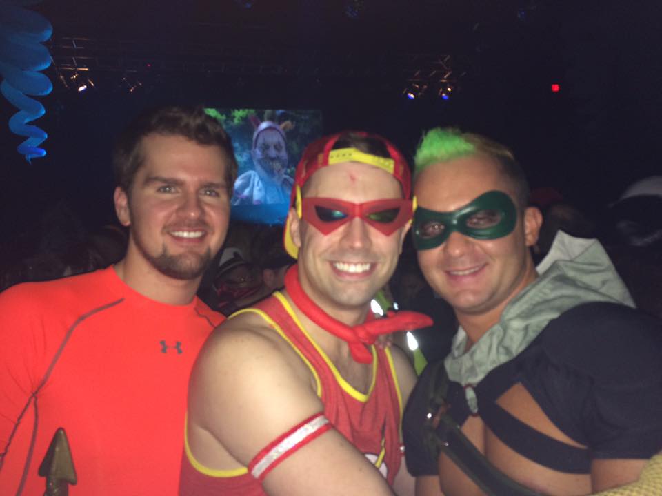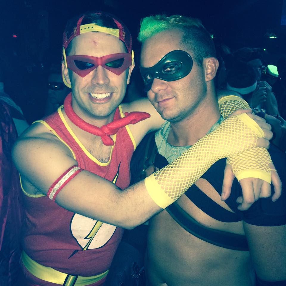 This raises for me the ages old dilemma of wondering who would cum out on top if superheroes were to suddenly turn on one another. In this case, Aqua Man, Green Arrow and the Flash throw down in the middle of the dance floor. Whose super sexiness and wrestling skills win the night?