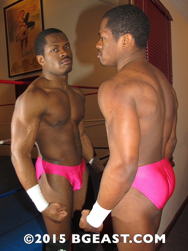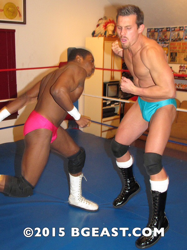 The last time a BG East debut captivated me quite as completely as Big Mamma, I was beginning a perpetual crush as president of the Lon Dumont fan club (just try to wrestle that title off my hands!). Brice is larger than life, with an aggressive, confident, cocky personality that can barely be squeezed inside the confines of a wrestling ring, much less manage to share it with anyone else. And speaking of squeezing into tight confines, that body!!! Holy fuck. Massive, broad, boulder shoulders, meaty pecs, ripped abs, TINY waist blossoming into an unbelievably gorgeous muscle ass, and beautifully, powerful legs… again I say, holy fuck, this man is stunning. And that face. Roaring and in charge, adrenaline pumping out his pores as he snarls and snaps, Brice has the unmistakable look of a potential header liner of a Fantasyman release in 2016.