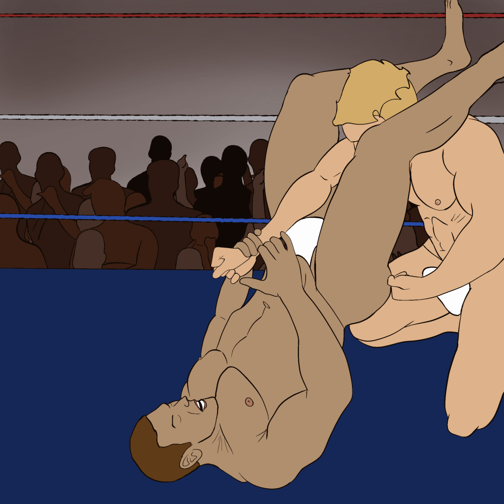 I’m sitting on several exciting projects that should ripen nicely within the coming days and weeks. I’m working on my next homoerotic wrestling comic, and I’m really, really enjoying how it’s turning out, so far. Here are a couple of preview images for you, available only here on the blog, in various states of being incomplete. They’ll look different in their final drafts, but I know some of you will get a kick out of the works-in-progress versions. The final drafts, in full comic layout, will appear at part of Sidelineland Stories.
