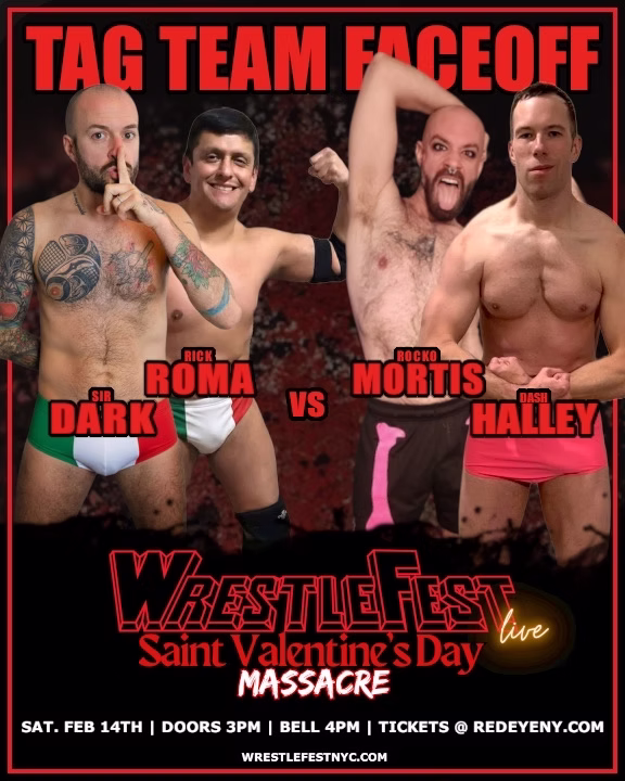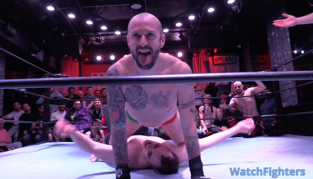 Watching this match (again), I’m in awe that this thing didn’t go off the rails a dozen different times. It’s super-fucking-sexy, with crotch-to-face poundings and luxurious body splashes that linger long and hard. But it’s also spinning like a centrifuge, with wrestlers and props and dignity flying out of the ring uncontrollably. I’ll never get tired of cuing up rival chaos demons daring one another to color farther and farther outside the lines. And I cannot get enough of babyface heroes crotch slamming their foes senseless and mugging for the roaring fans. And who do I have to sleep with to see someone suck Dash Halley’s nipples when he makes his third appearance on the card at Wrestlefest NYC ’27 (fingers crossed)?
