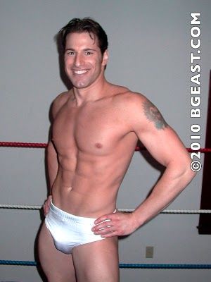 Ass #1 belongs to the top contender for the title of my favorite homoerotic wrestler – non-pornboy: BG East’s Joshua Goodman (that’s Mr. Joshua to you! and extra credit to Jose D. for mentioning this fact). I figured this might pose a challenge because, seriously, it’s an uphill battle to try to tear your eyes away from Mr. J’s mammoth package to appreciate his remarkably beautiful assets elsewhere. I think the best shot of his fantastic, sweaty, hard muscled glutes show up when he’s stripped to his thong in his match with Rocco in Jobberpalooza 7. True, Mr. J is completely bare-assed at the hands of Brooklyn Bodywrecker in Mr. J’s Wrestler Spotlight, but this is mostly smoke and mirrors, and I remain bitter at being personally taunted by BBW at the end of this bout (well, not me personally, but all of us suckered into snapping this piece up to see Mr. J’s naked piece… doesn’t happen). Mr. J pulling out some thonged ass domination on Rocco, for my taste, is the best for ogling his carved, round muscle glutes.