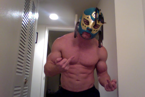 Bard: Coincidentally, I used to have a shop steward who should’ve been a homoerotic wrestler! And all of the sexiest men have dogs… that’s my working theory at least. Speaking of getting your ass beast, you seem to be awfully proud of the fact that your lean ass has been bashed by the best. What’s it like for you when you’re in the middle of a match being dominated by some bigger guy?
