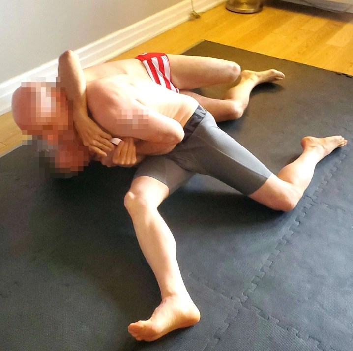 My unsolicited advice to homoerotic wrestling fans for the coming year is build your community. I’m sure it’ll look different for each of us, but find someone to share your wrestling imagination with like I’ve found with AR. Find friends who will make you feel good about yourself and encourage you to live your truth, like my buddies in the Wrestle Shack. If you’re into it, find some sexy wrestlers who are excited to explore with you the sensationally hot pleasures of wrestling, who respect your boundaries and are eager to find the ways that your pleasure and theirs line up. Hell, I really wish for you all to find someone who looks at you the way Scott looks at me when his head is trapped in my scissors, his face turning beet red, all of his hot, hard earned muscles just not enough to make his escape, and he sighs that deep, ragged sigh of resignation before bitterly tapping out, swearing, again, that it’ll never happen again.