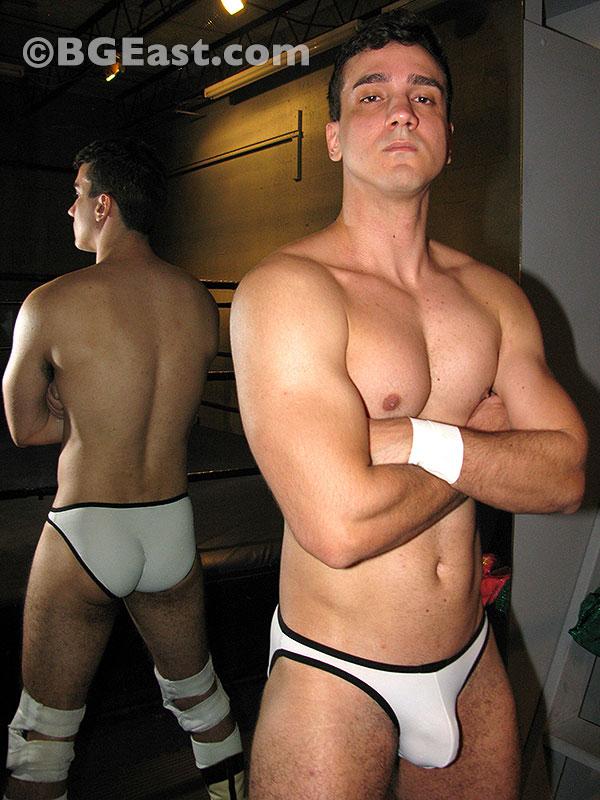 After years of there being one standout each season for best bulge, this is suddenly one of the most competitive categories. Last year’s winner, Kirk Donahue, is back to defend his title. Mr. Joshua, who wasn’t nominated last year but has owned the title more often than not, is back in contention. Cage Thunder’s throbbing rod not only blazed to full glory, but got used and abused by his babyface nemesis. And then there was the collective gasp throughout the homoerotic wrestling world when Steve Mason’s debut revealed one of the biggest power tools I’ve ever seen. The full slate looks like this…