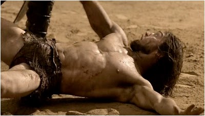 Superherofan is doing an excellent job of reminding me about the gorgeous buffet of manflesh on the Starz series, Spartacus: Blood and Sand. For some reason, I need reminding, because this series (shockingly) has not become must-see television for me. The sheer quantity of high, high quality muscles on display, frequently naked, in the context of the brutality and life-and-death gladiator competition of the Roman arena seems like it would be seared into my head as a required television destination. For some reason, it has not.