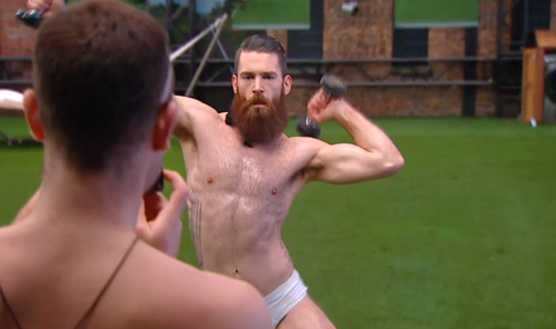 I haven’t really paid attention to the Big Brother franchise in years, but seeing this slice of homoerotic fantasy gold plastered across the internet certainly caught my attention yesterday. I can report only what I read online, because I didn’t even know there was such a thing as “Big Brother Canada,” and now that I do, I find out that I can’t watch it online from my “location.” Bigots. However, if there’s more eye candy from furry gay male model Kenny Brain in loosey whities and olive oil, I predict he’s got a big, big future ahead of him on a screen in front of me.