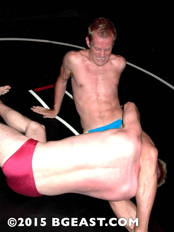 Praise be to the homoerotic wrestling gods that heard my prayers and made this match happen, because watching these to men who know each other so well, with such a history of mutual admiration as well as a burning grudge, is epic. BG East is a better place for having both of these highest class of athletes on board. And if you’re wondering whether Cameron knocks his bodybuilder mentor down a few pegs, I’ll just say that I (and Blaine) were intensely pleased to watch the climax of this barely controlled chaos of a pro wrestling match for gay eyes. So much muscle. So much sweat. Such beautiful wrestling.