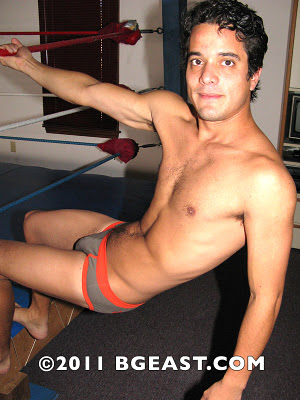 Bard: That’s a fantastic menu! I love to hear that you boys mix it up with trash talk online. Nothing, but nothing hotter than an erotic grudge match! And I’d love to see you give Kid K a go! But I warn you, if you found Gabriel Ross’s hot bod distracting, you’d better include some hardcore tantric meditation to your training schedule, because you wouldn’t be the first challenger to get completely thrown off your game plan when he shoves that world class ass in your face and flexes for you. I definitely want to see that match happen… from the front row! Since you’ve been a BG East fan for a while, who are some of the classic wrestlers who’ve retired from the scene that you would’ve liked to have faced in their prime? And what are some highlights of what those fantasy matches would have entailed?