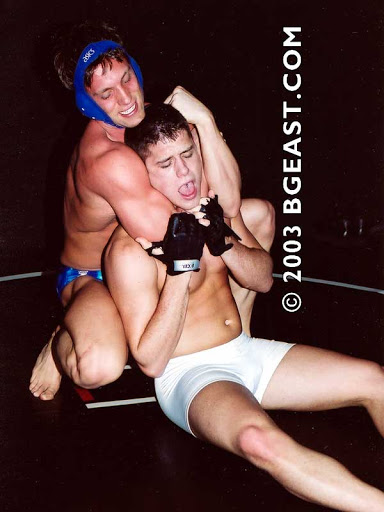 Bard: Hot, hot, hot! I love the fact that you know the BGE catalogue so well. I’m making an educated guess that your familiarity with the classics will be a major asset in your evolving homoerotic wrestling career. Taking the best, hottest elements of the best and hottest wrestlers seems like it would automatically give you a huge leg up against other wrestlers, particularly other rookies. And personally, I think any wrestler who wears headgear into the ring (a la Josh Avery) should get tied into the ropes with said headgear stuffed down his trunks. But that may be just me. So Aryx, Nick, and Josh… I’m sensing a prettyboy-jock theme. Are there particular themes to the guys that get your heart pumping hardest? Angelic-looking sadists with gym bunny bodies and English accents can obviously top you off, but do you have other “tastes” that you tend toward in your guys?