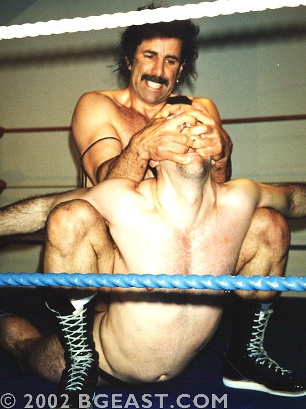 Brendan is a lamb to slaughter. He just doesn’t see anything coming. BBW absolutely manhandles and mauls him with the relentless certainty of the rising tide. He smothers the adorable kid in his hairy pit, in his crotch, in his ass. He delivers a swarm of ring-rattling scoop slams that look like they might have left Brendan-shaped indentations in the ring. He’s got him spreadeagled across the ropes in the corner and place-kicks the future-brutal-one’s balls relentlessly. The repeated over-the-knee backbreakers that are nothing short of erotic sculpture, with BBW’s huge, hairy muscles flared and Brendan’s long, lean, lithe body twisted to perfection at the edge of snapping.