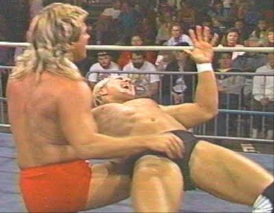 For my money (and yes, I’ve invested quite a bit), the over the knee backbreaker, when done right, is by far the sexiest tool in the homoerotic wrestling arsenal.