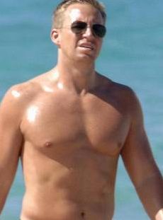 There’s a criminally brief and blurry shot of him training in the pool. It’s not entirely satisfying, but Big Boy is clearly sporting some big, bronze pecs with tight little brown nips. They may not be quite as lucsious as Cuomo’s, but I’d need to compare in a side-by-side pec-off, with lot’s of flexing and baby oil, to make sure.