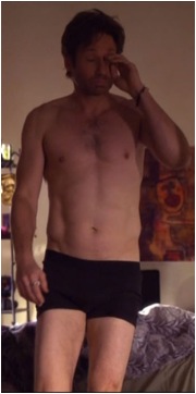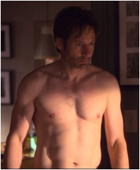 David Duchovny ever since Fox Mulder sulked into my heart in the very first season of X-Files. I was so excited that David was coming back to TV when Californication launched a couple of years ago. I watched the first season, despite the many XX chromosomes over-exposed all over the place and graphic talk about the simulated sex acts with women that really, really (really) doesn’t interest me. Still, David’s naked body frequently on display was enough to keep me tuning in.