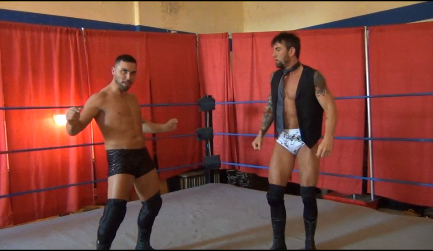 The contrast between these two is visually stunning. They look roughly similar heights, but somehow Flash is twice the man Johnny is. He’s thick and bulging all over. His dark complexion, shimmering with a light coat of baby oil, makes Johnny’s lightly hairy paleness almost hurt the eyes. Flash’s magnificent full, thick beard is superbly masculine and mature. Johnny looks like a 19 year old kid who’s just a bit of a late bloomer. Flat chested, undeveloped arms, slightly meatier legs. And, as I said, Flash is a seasoned pro heel who has about 15 ways in mind to bend, break, and completely terrorize a simple kid with a magnificent ass.