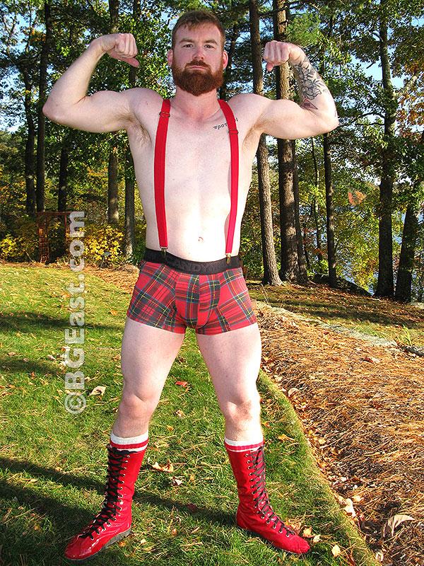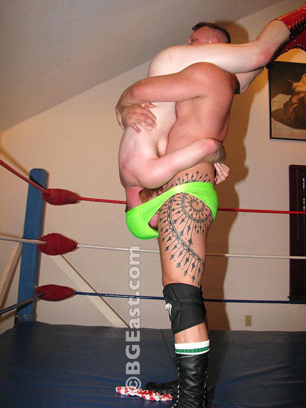 Surely, I don’t need to give a spoiler alert for a Jobberpaloozer match, right? Suffice it to say, Chase unloads both barrels on the pretty boy, and reloads over and over again. I stand up and cheer when Chase executes his signature Will Breaker, and only a little bitter when Forrest is screaming his submission a half a second after getting strung up in the spine snapping hold. Chase is an artist, and his primary medium is molding a magnificently hot jobber like Forrest into homoerotic wrestling sculpture. “Are you humbled yet,” Chase shouts in Forrest’s face before stringing the hopeless redhead up in the ropes. He slaps Forrest’s pale body beet red. He smothers the bearded beauty with his crotch. He plants his ass in Forrest’s face again and again, eventually inspiring the redhead to defensively take a bite out of Chase’s lush cheeks. “Oh, you want to eat some ass?!” Chase seems both enraged and thrilled to have more reasons to thrash on his outmatched opponent. “Here’s the full course!”