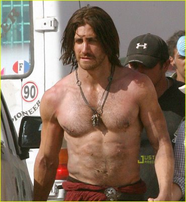 Have I mentioned that got sucked into Prince of Persia, the videogame, for a while? It’s not something I’m proud of. Obsessing over a video game is so junior high. Still, as the main character in the video game gets increasingly stripped of his clothes and more muscularly defined over the course of the story line, it all has an erotic subtext/text that I’m helpless against. That’s exactly how I feel seeing the drool-worthy teaser stills of Jake playing this role. Now, if I could only grab him by the joystick and make him do whatever I want him to do, just like the video game…