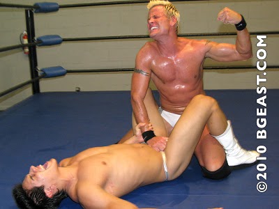 I know, I know. The probability that just about any of my fantasy reading of the preview pics for Pro Challenge actually resembles the product to be released is almost non-existent. Both Cameron and Jobe have kept at least a modicum of modesty (i.e., trunks or, at least, thongs) throughout their careers, again, as far as I’ve seen (please correct me if I’m wrong). While Jobe’s been handily crushed a few times, particularly at BG East, Can-Am has been pushing him as quite the terrifyingly unstoppable heel, so messing with that momentum probably isn’t in the cards.